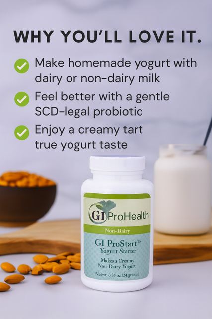 This GI ProStart™ Yogurt Starter culture is designed to provide a culture that will incorporate the attributes of safety, efficacy and optimal function in support of the SCD dietary program.